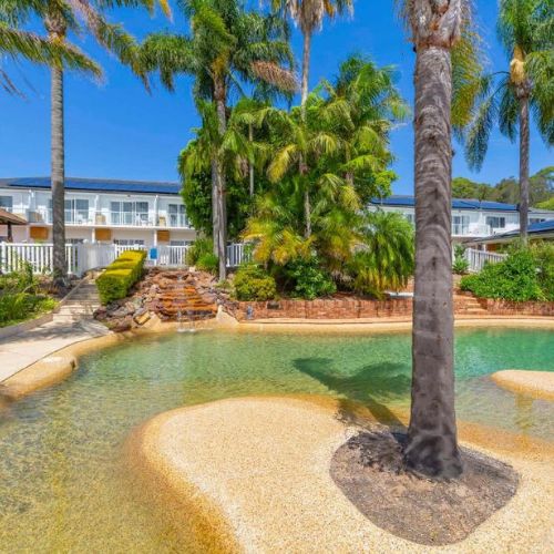 The Quarters is a boutique medium-term accommodation on the NSW Central Coast, with accessible rooms, tropical gardens, a lagoon pool, access to allied health services, an on-site café and restaurant.